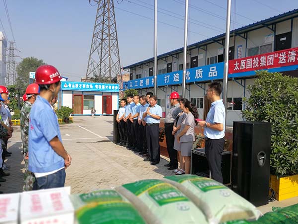 8月8日上午,慰問組一行深入東社、義井兩個(gè)項(xiàng)目施工現(xiàn)場(chǎng),檢查安全生產(chǎn)、勞動(dòng)保護(hù)和健康保障落實(shí)情況,為項(xiàng)目現(xiàn)場(chǎng)管理 人員和勞務(wù)工人送去防暑降溫和勞動(dòng)保護(hù)用品,為一線職工傳遞集團(tuán)公司的關(guān)切之情。同時(shí)激發(fā)出職工戰(zhàn)高溫、保安全、促發(fā)展的激情和干勁,鼓舞一線職工以更加飽滿的熱情投入到項(xiàng)目施工中去。