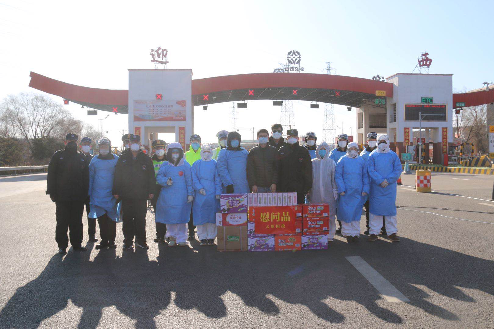 在迎西高速路收費(fèi)口,楊柳同志代表公司向疫情防控卡點(diǎn)轄區(qū)公路、公安、交警、衛(wèi)健委和街辦等一線防疫工作人員進(jìn)行慰問(wèn),并送上慰問(wèn)物品。