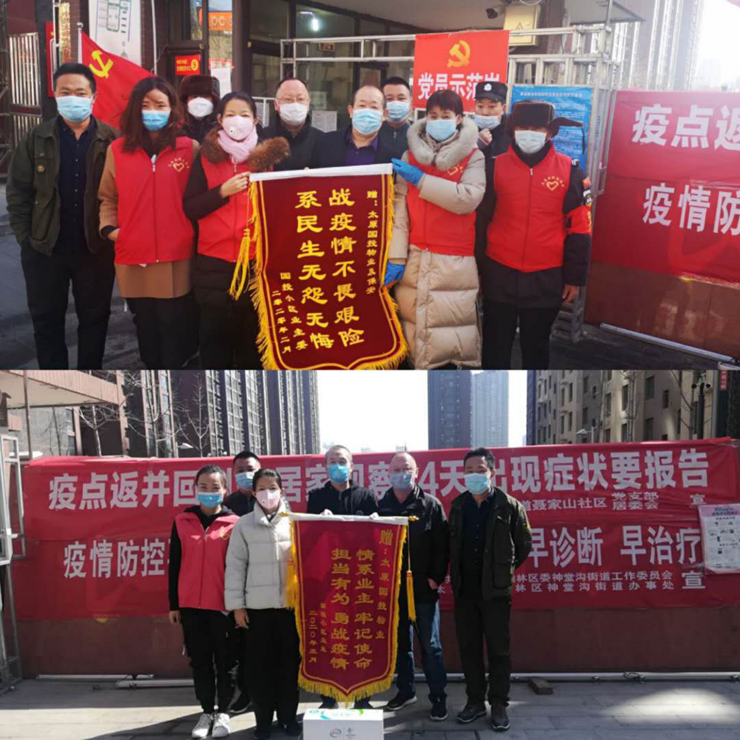 2020年3月10日下午,國(guó)興小區(qū)疫情防護(hù)工作組的人員正在井然有序的忙碌著,這時(shí),一位業(yè)主手拿一幅寫(xiě)著“戰(zhàn)疫情不畏艱險(xiǎn)、系民生無(wú)怨無(wú)悔”的錦旗,送到國(guó)興小區(qū)西門(mén)房。3月11日上午,同樣的地點(diǎn),我們又收獲了“情系業(yè)主 牢記使命 擔(dān)當(dāng)有為 勇戰(zhàn)疫情”的錦旗一幅。業(yè)主的話語(yǔ)都是一樣的:“感謝你們這么長(zhǎng)時(shí)間辛勤的付出,保護(hù)著我們的家園不被病毒侵襲”,我們的回答也一樣:“這是我們應(yīng)該做的”!