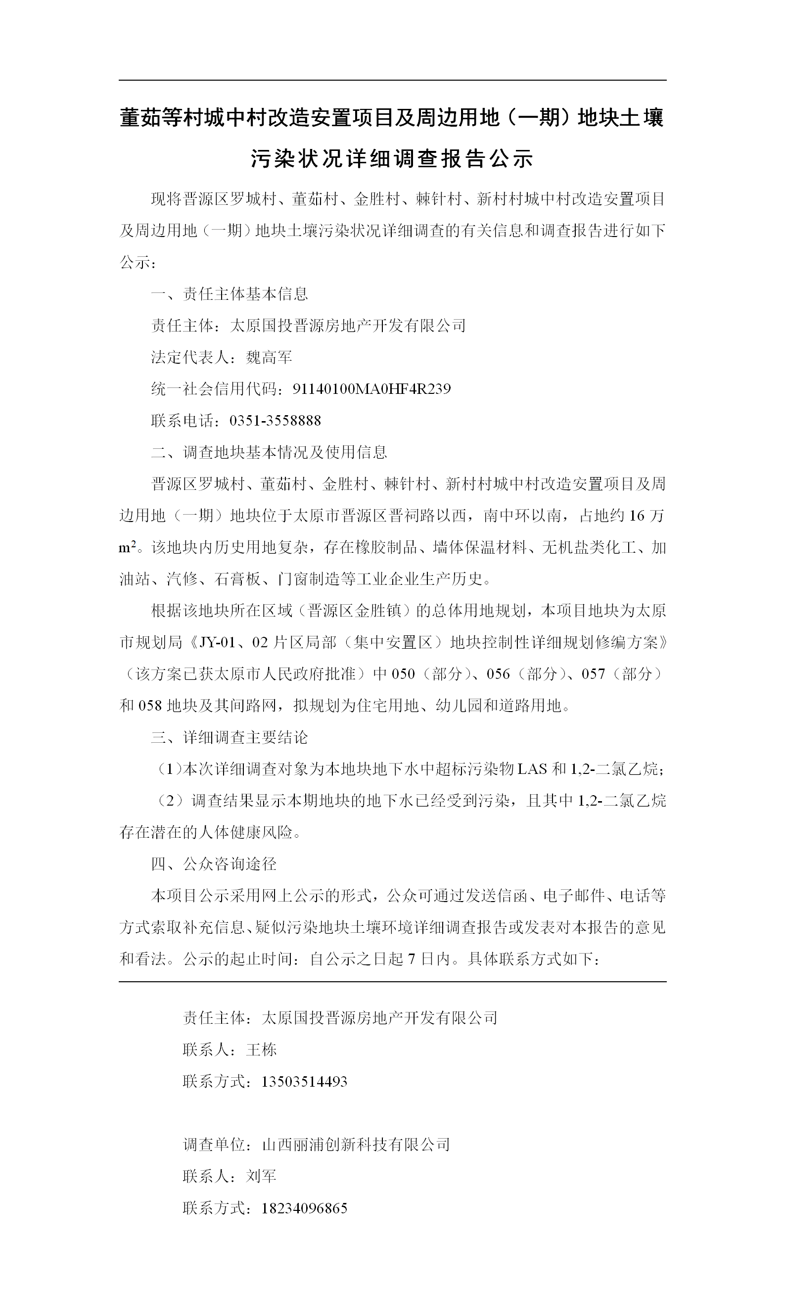 董茹等村城中村改造安置項目及周邊用地(一期)地塊土壤污染狀況詳細調(diào)查報告公示