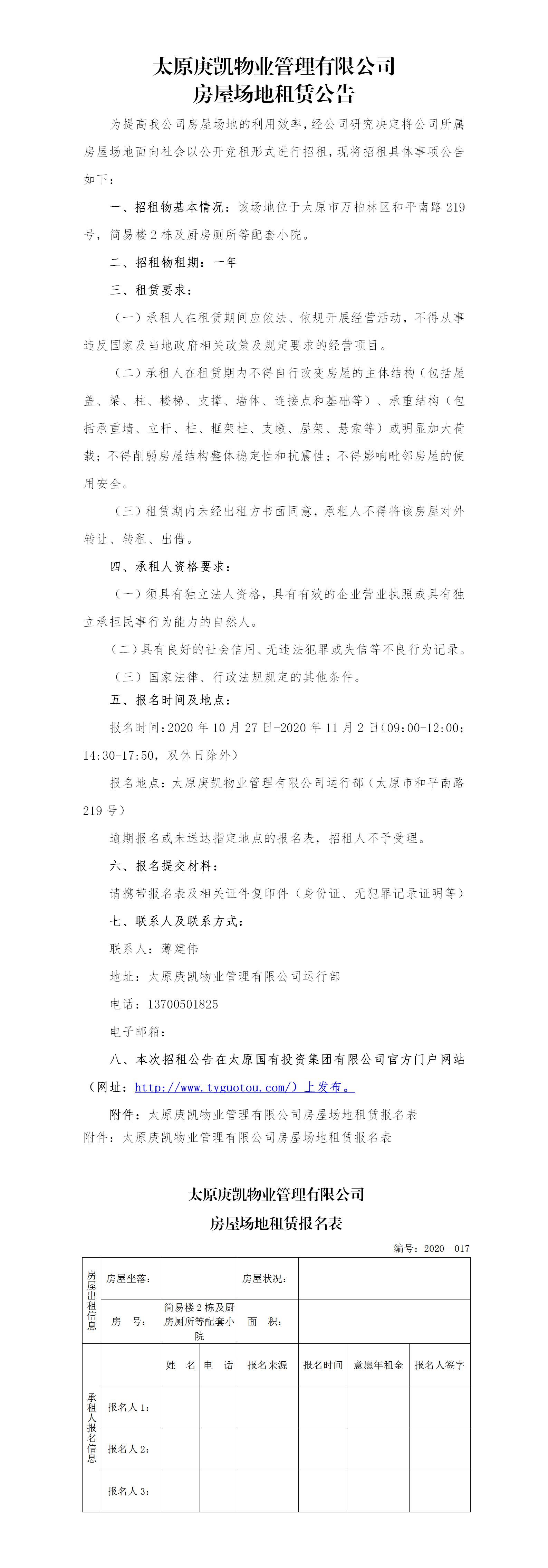 太原庚凱物業(yè)管理有限公司房屋場(chǎng)地租賃公告(十七)