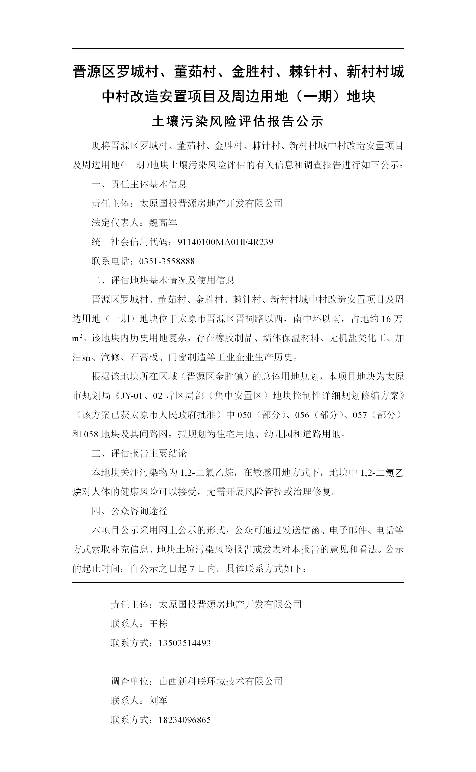 董茹等村城中村改造安置項(xiàng)目及周邊用地(一期)地塊土壤污染風(fēng)險(xiǎn)評估報(bào)告公示