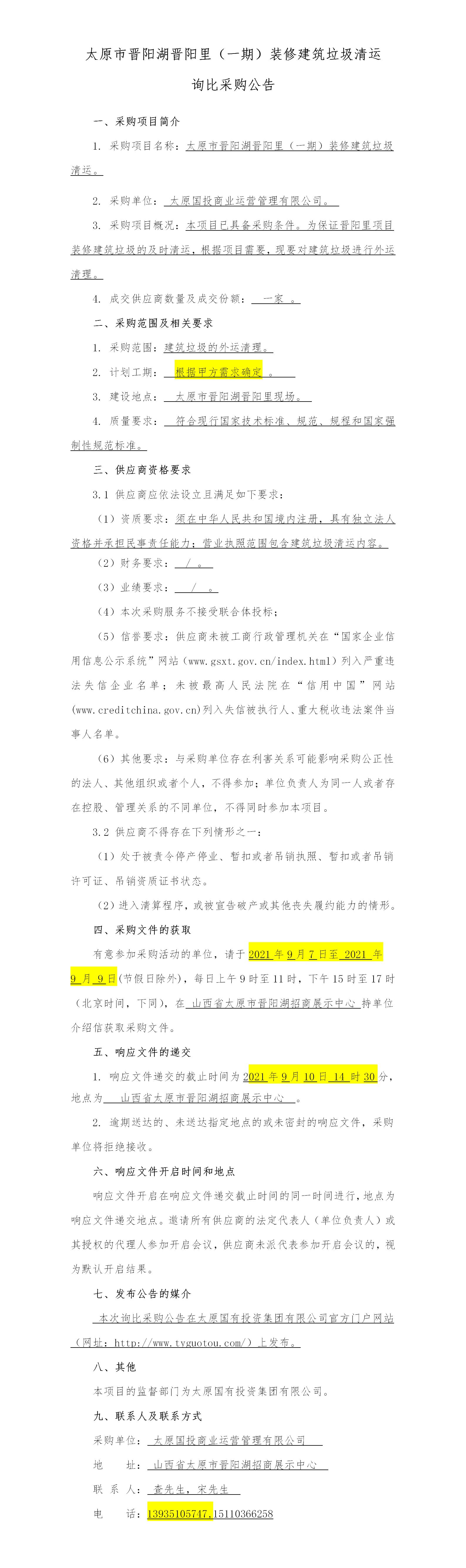 太原市晉陽湖晉陽里(一期)裝修建筑垃圾清運公告