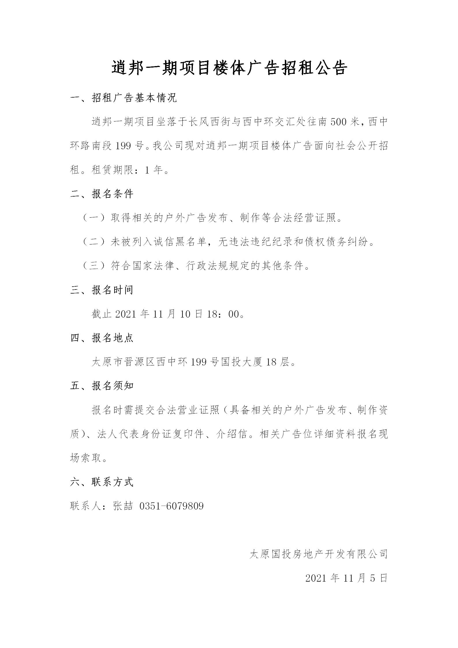 逍邦一期項(xiàng)目樓體廣告招租公告