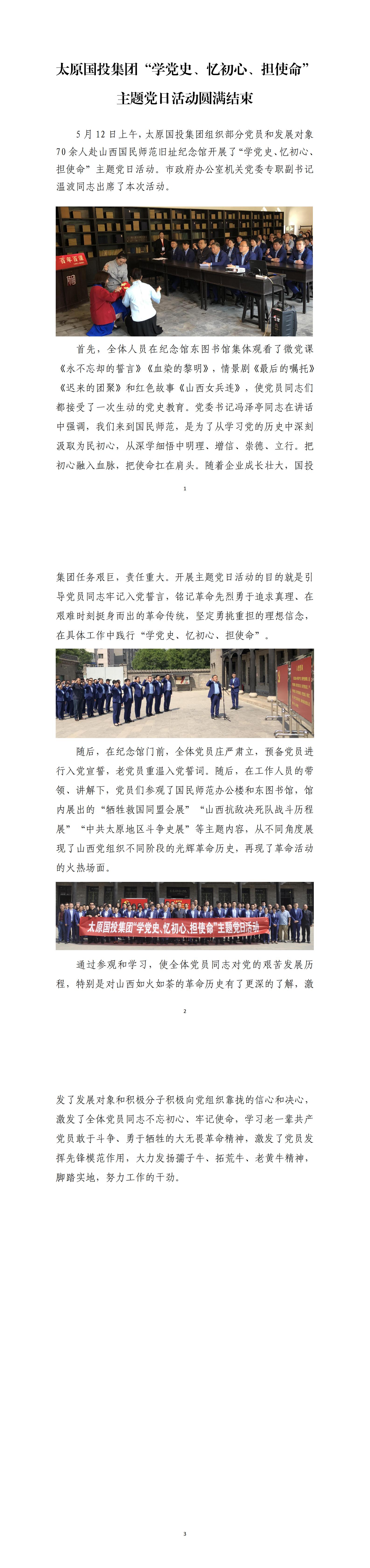 太原國投集團“學黨史、憶初心、擔使命”主題黨日活動圓滿結束