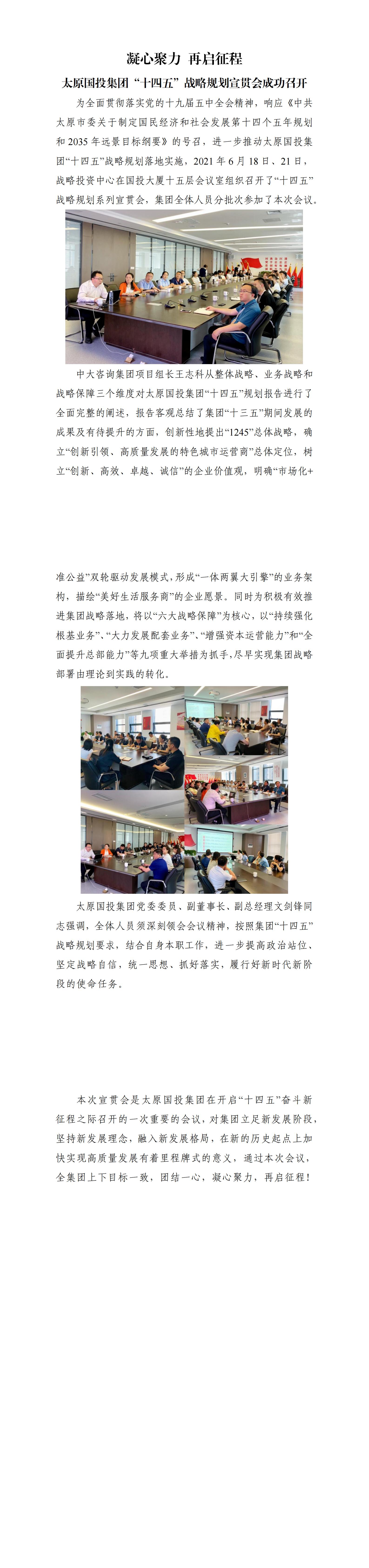 凝心聚力 再啟征程 太原國投集團“十四五”戰(zhàn)略規(guī)劃宣貫會成功召開