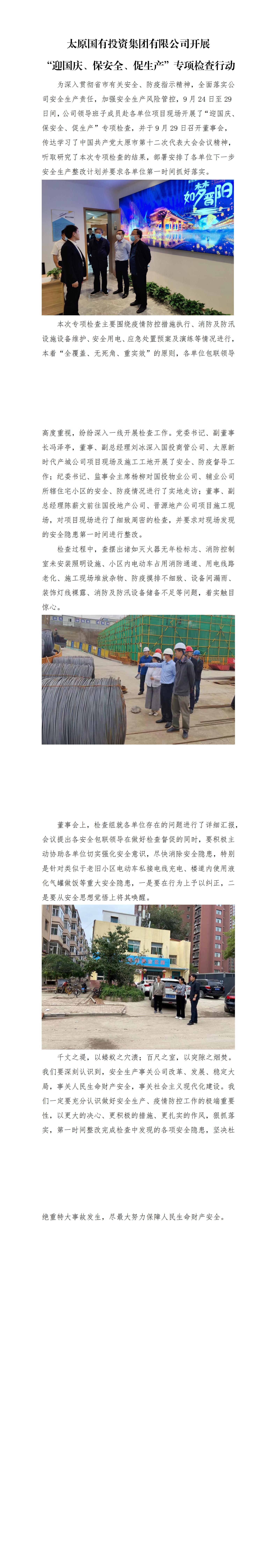 太原國有投資集團(tuán)有限公司開展“迎國慶、保安全、促生產(chǎn)”專項檢查行動