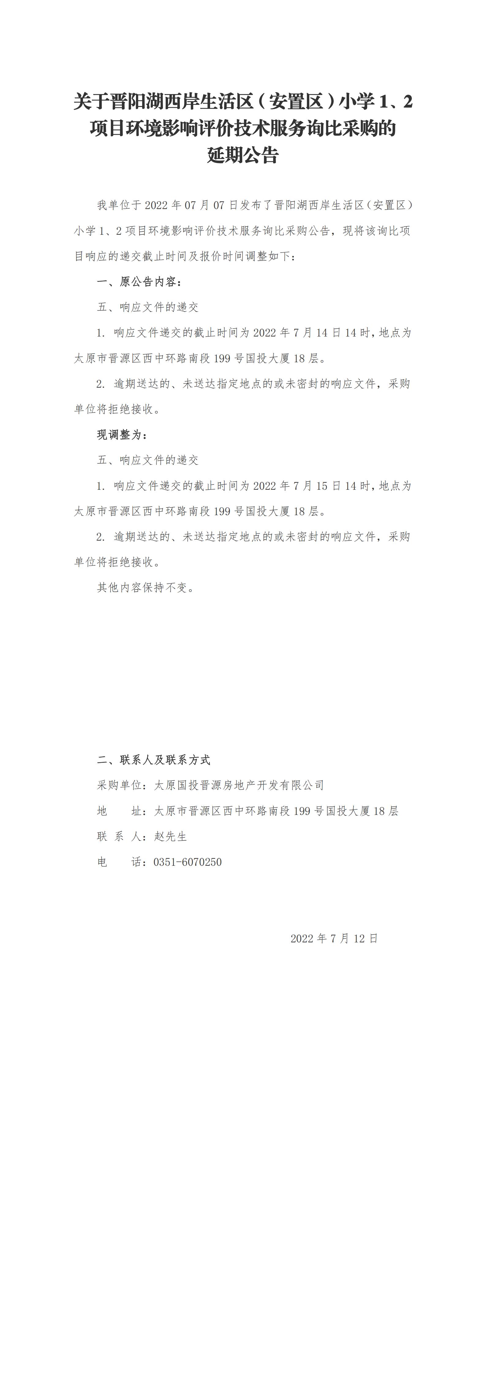 關(guān)于晉陽湖西岸生活區(qū)(安置區(qū))小學(xué)1、2項(xiàng)目環(huán)境影響評價技術(shù)服務(wù)詢比采購的延期公告