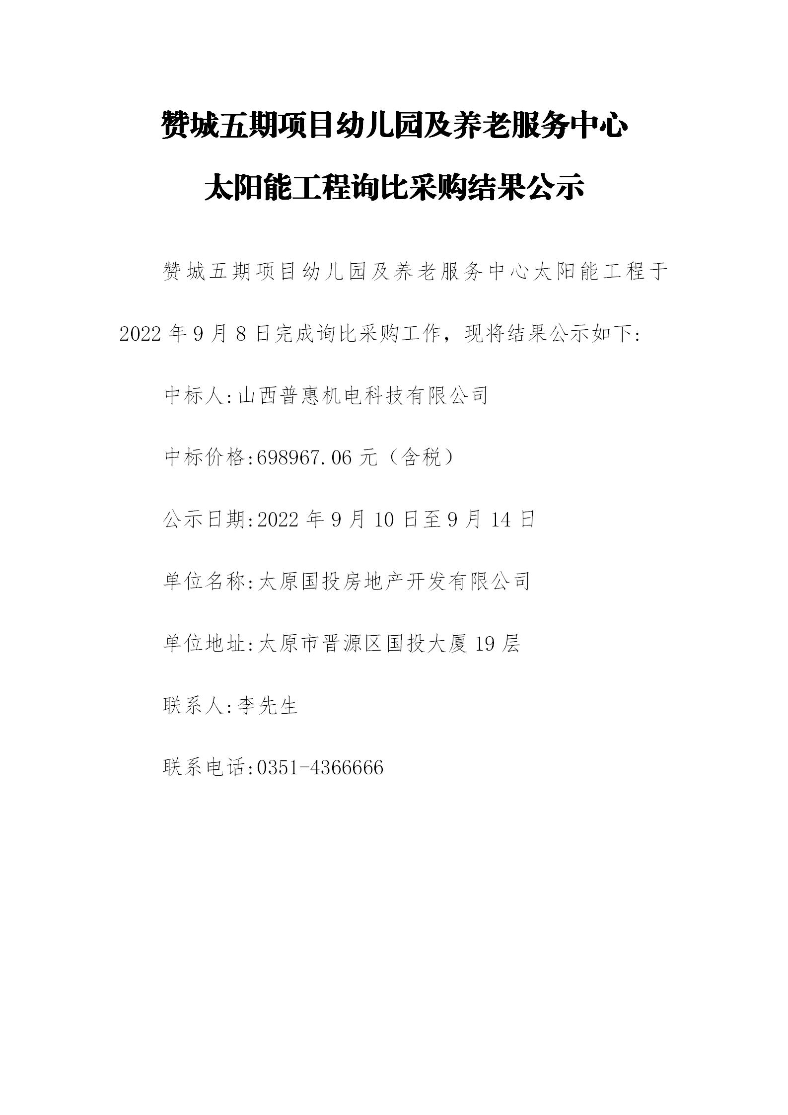 贊城五期項(xiàng)目幼兒園及養(yǎng)老服務(wù)中心太陽(yáng)能工程詢比采購(gòu)結(jié)果公示