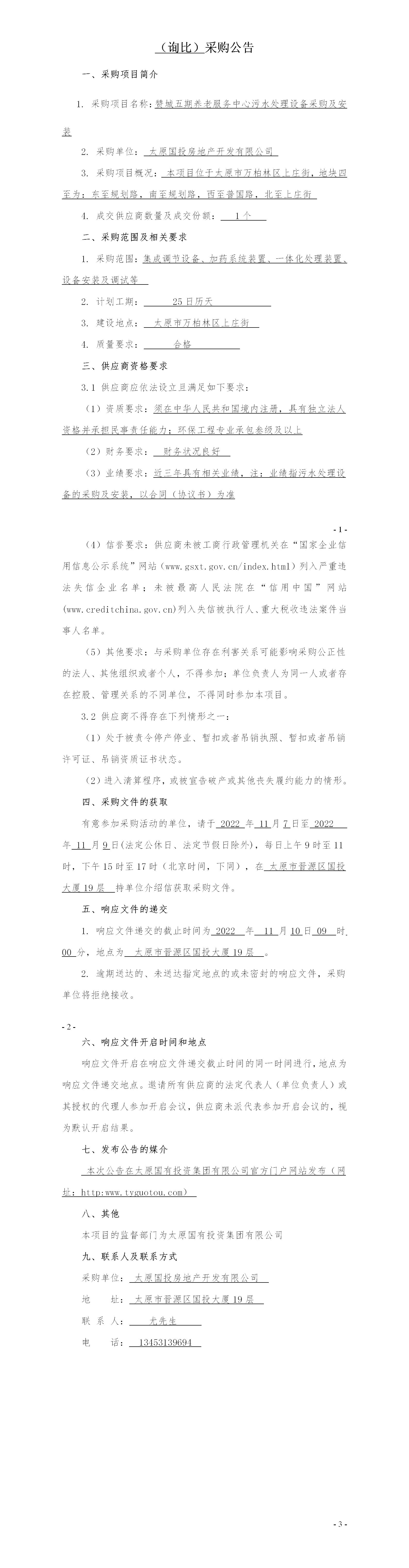 養(yǎng)老服務中心污水處理設備采購及安裝詢比采購公告