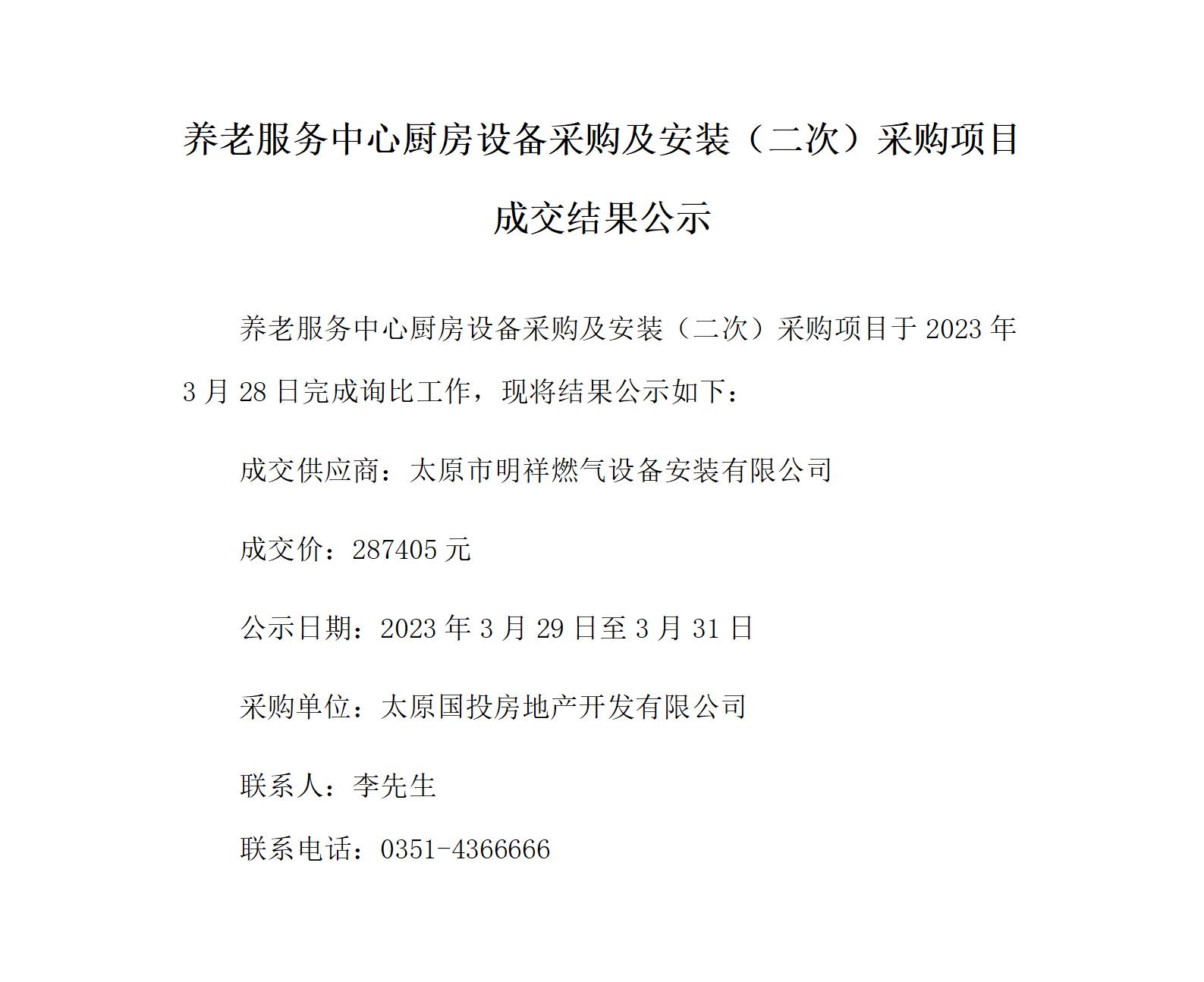 養(yǎng)老服務(wù)中心廚房設(shè)備采購及安裝(二次)采購項(xiàng)目成交結(jié)果公示