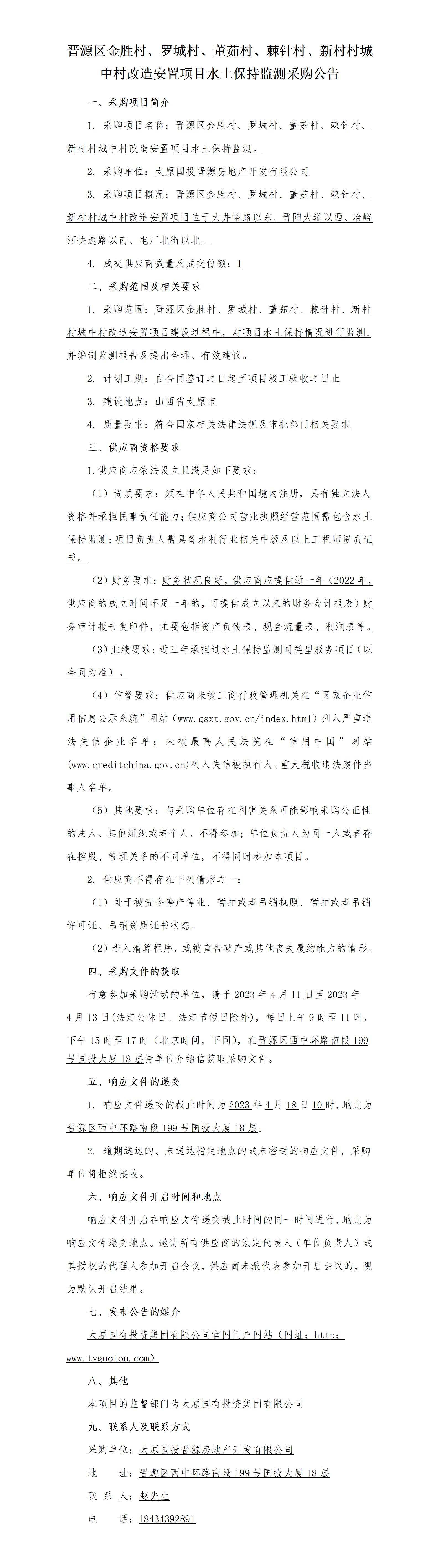 晉源區(qū)金勝村、羅城村、董茹村、棘針村、新村村城中村改造安置項(xiàng)目水土保持監(jiān)測(cè)詢比公告