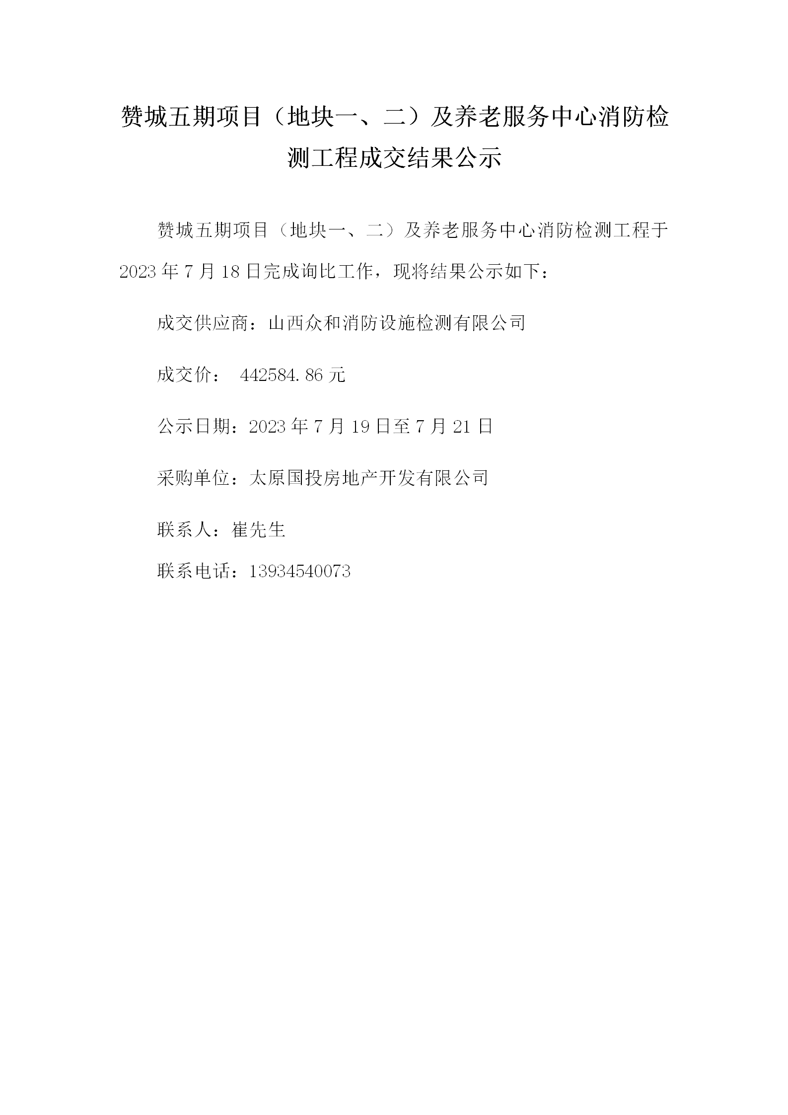 贊城五期項(xiàng)目(地塊一、二)及養(yǎng)老服務(wù)中心消防檢測(cè)成交結(jié)果公示