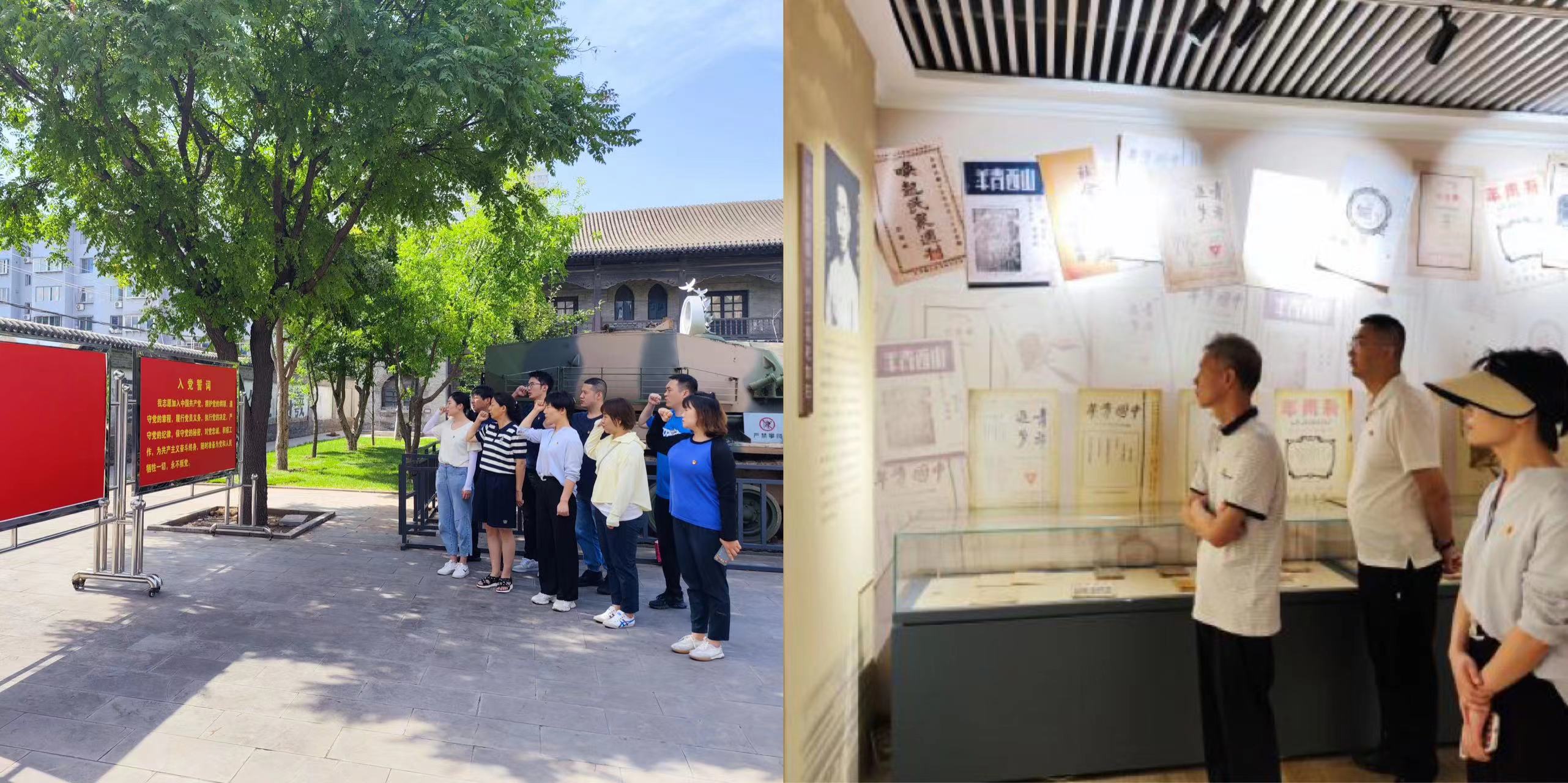 支部全體人員在拱極門集合出發(fā),先后參觀了國民師范舊址、八路軍駐晉辦事處舊址紀(jì)念館和犧盟會(huì)太原市委舊址,全程徒步約3公里?!拔抑驹讣尤胫袊伯a(chǎn)黨,擁護(hù)黨的綱領(lǐng),遵守黨的章程...隨時(shí)為黨和人民犧牲一切,永不叛黨!”大家在黨旗前莊嚴(yán)宣誓,時(shí)刻提醒自己要永葆對(duì)黨忠誠的政治品格,要時(shí)刻堅(jiān)守忠誠的政治底色,踐初心、勇?lián)?dāng)、強(qiáng)作為。“團(tuán)結(jié)就是力量,團(tuán)結(jié)就是力量,這力量是鐵、這力量是鋼...” 紅歌鏗鏘有力,催人振奮。大家在兩個(gè)領(lǐng)唱員帶領(lǐng)下在革命舊址唱紅歌集體重溫革命傳統(tǒng),復(fù)習(xí)紅色文化,為黨的生日獻(xiàn)禮。打卡紅色基地,重溫紅色歷史、緬懷革命先烈,通過一幅幅珍貴的歷史照片、一件件珍貴的抗戰(zhàn)文物,再現(xiàn)老一輩無產(chǎn)階級(jí)革命家的英雄事跡和豐功偉績。
