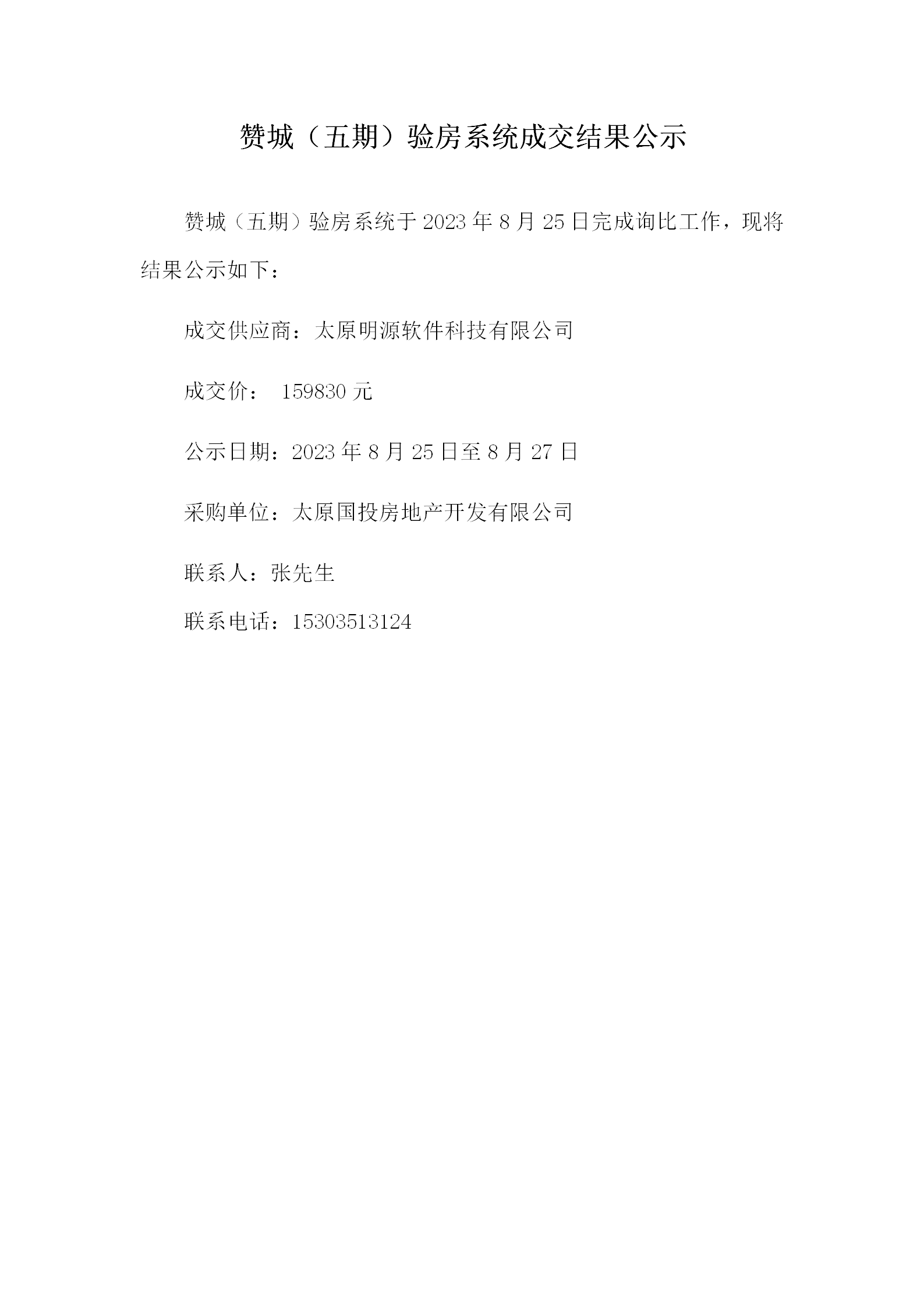 贊城(五期)驗房系統(tǒng)成交結果公示