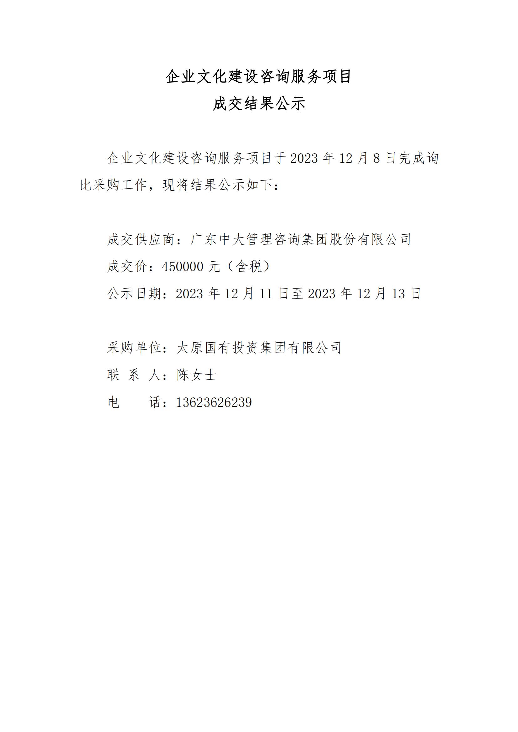 企業(yè)文化建設(shè)咨詢服務(wù)項目成交結(jié)果公示