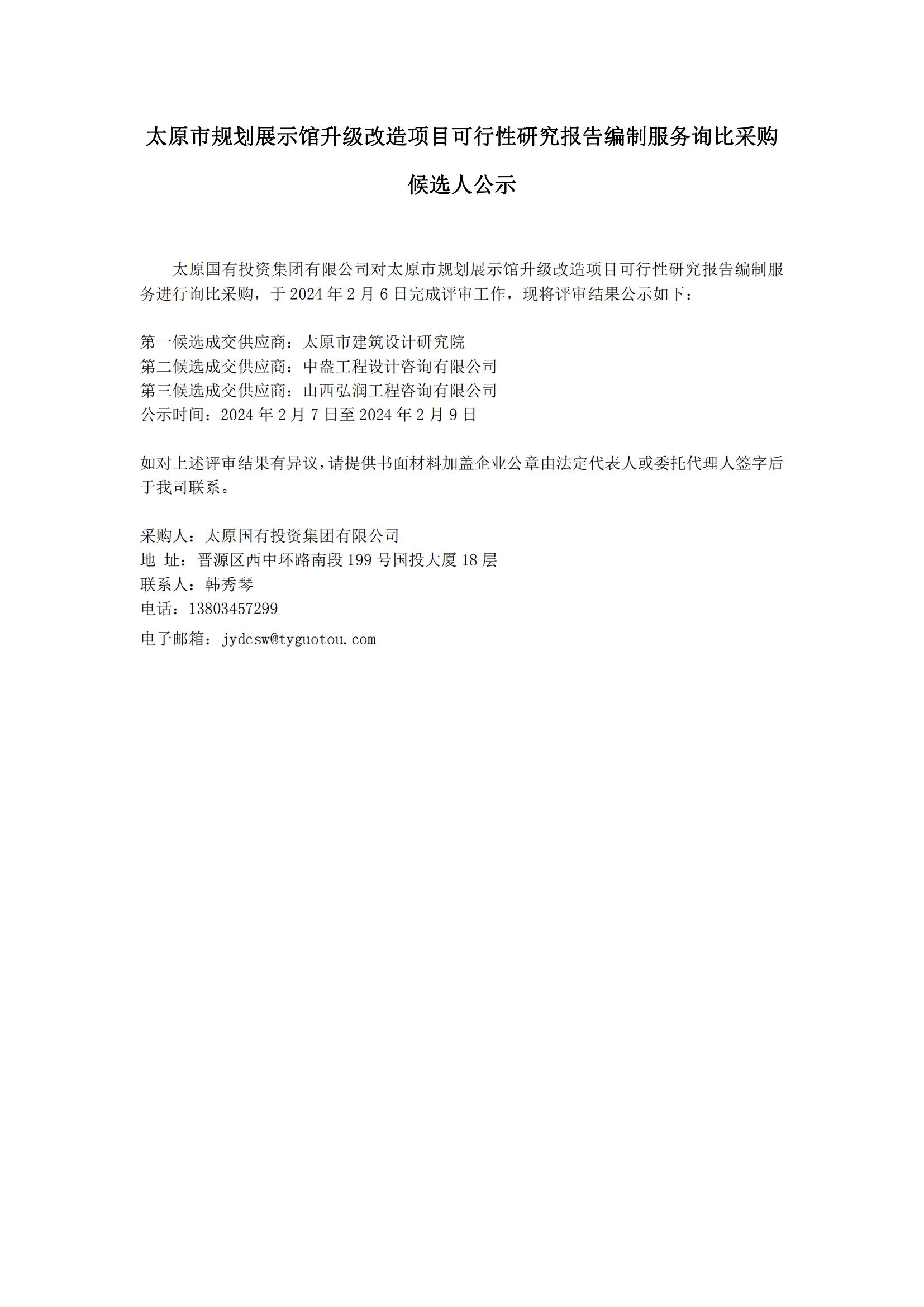 太原市規(guī)劃展示館升級改造項目可行性研究報告編制服務成交候選人公示