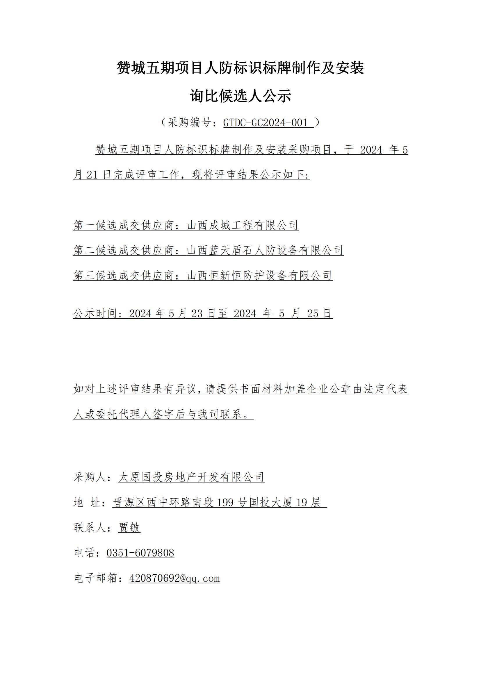 贊城五期項(xiàng)目人防標(biāo)識(shí)標(biāo)牌制作及安裝詢比候選人公示