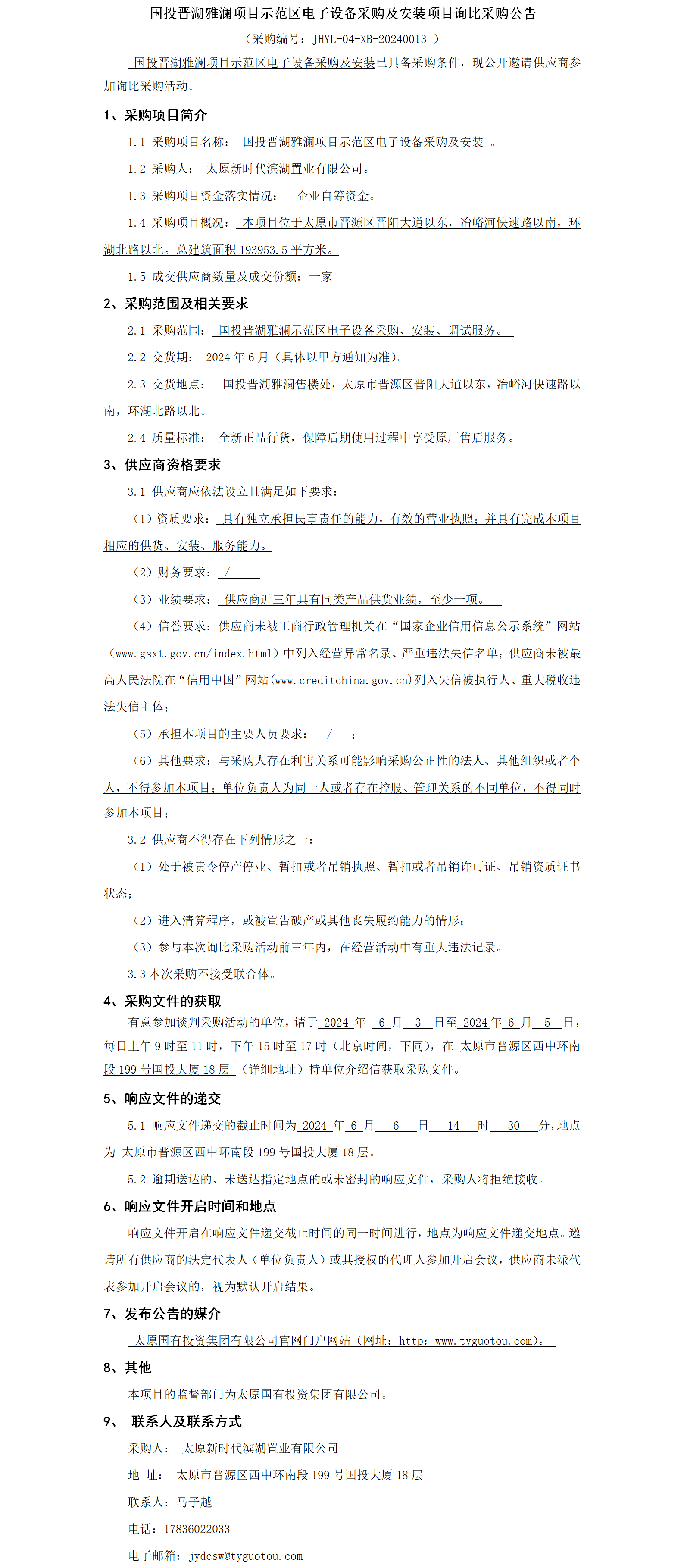 國投晉湖雅瀾項目示范區(qū)電子設(shè)備采購及安裝項目詢比采購公告