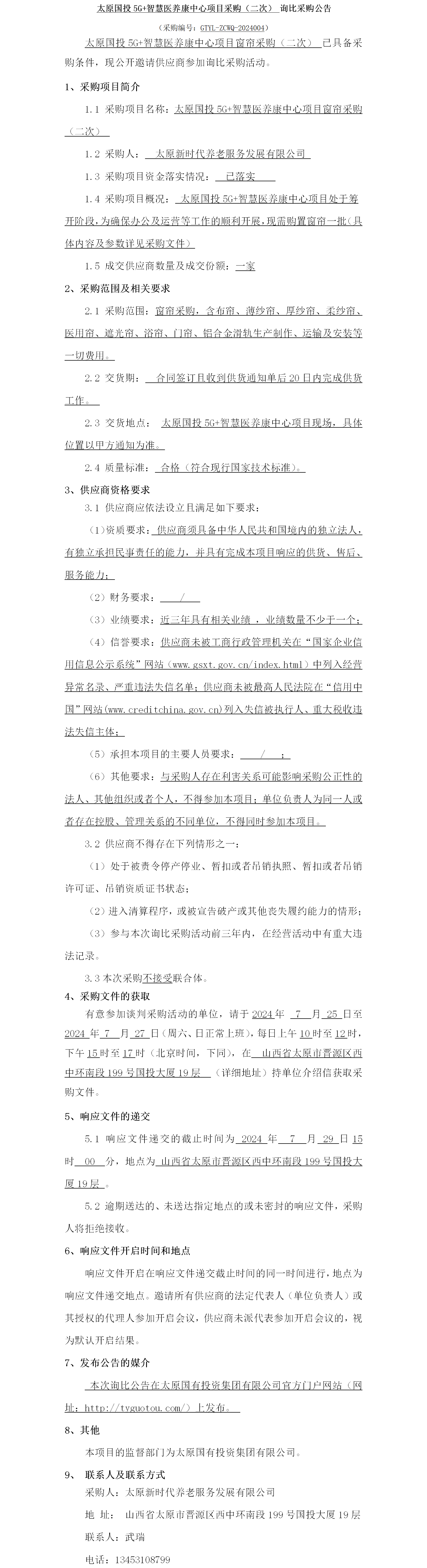 太原國(guó)投5G+智慧醫(yī)養(yǎng)康中心項(xiàng)目采購(gòu)(二次)詢比采購(gòu)公告