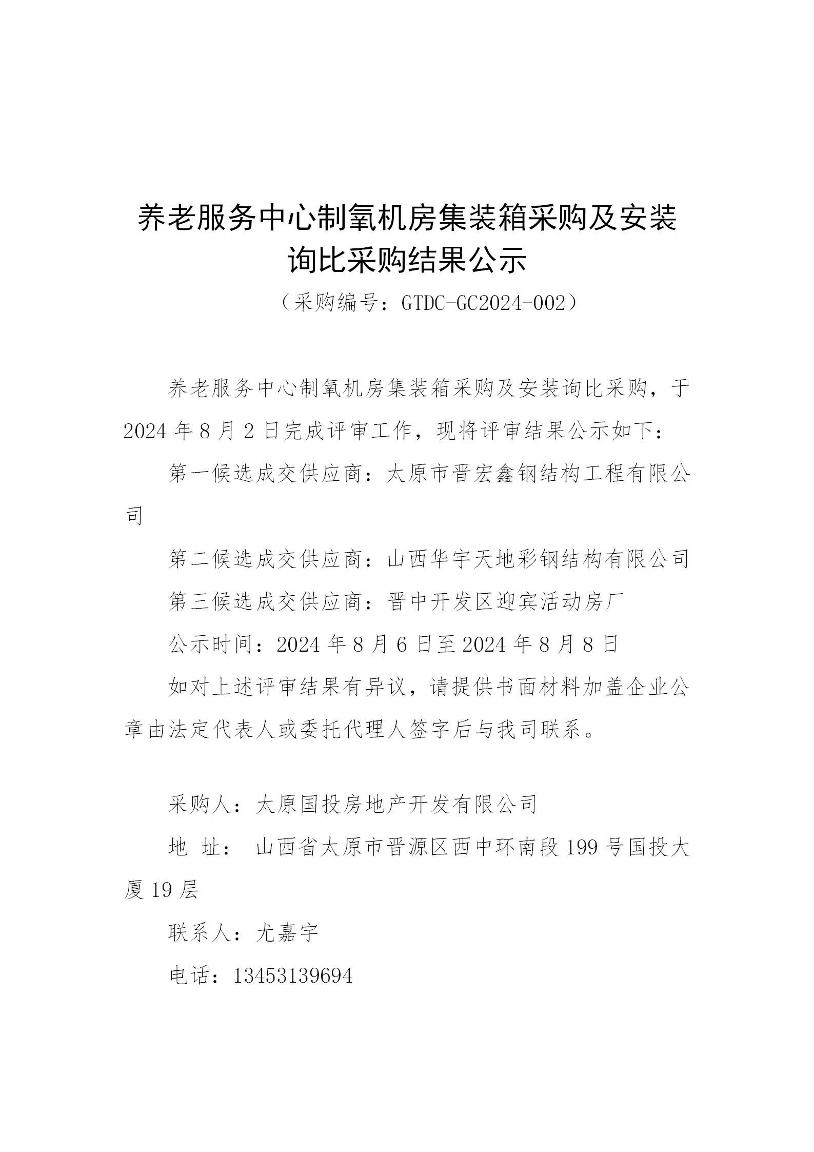 養(yǎng)老服務(wù)中心制氧機(jī)房集裝箱采購及安裝詢比采購結(jié)果公示
