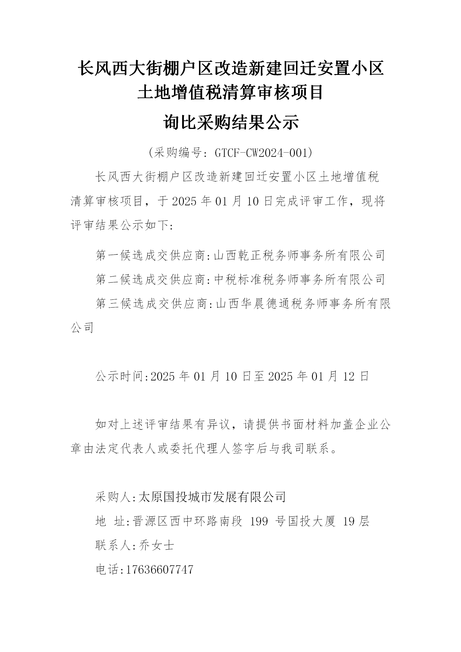 關(guān)于長(zhǎng)風(fēng)西大街棚戶(hù)區(qū)改造新建回遷安置小區(qū)土地增值稅清算審核項(xiàng)目詢(xún)比采購(gòu)結(jié)果公示的發(fā)布申請(qǐng)