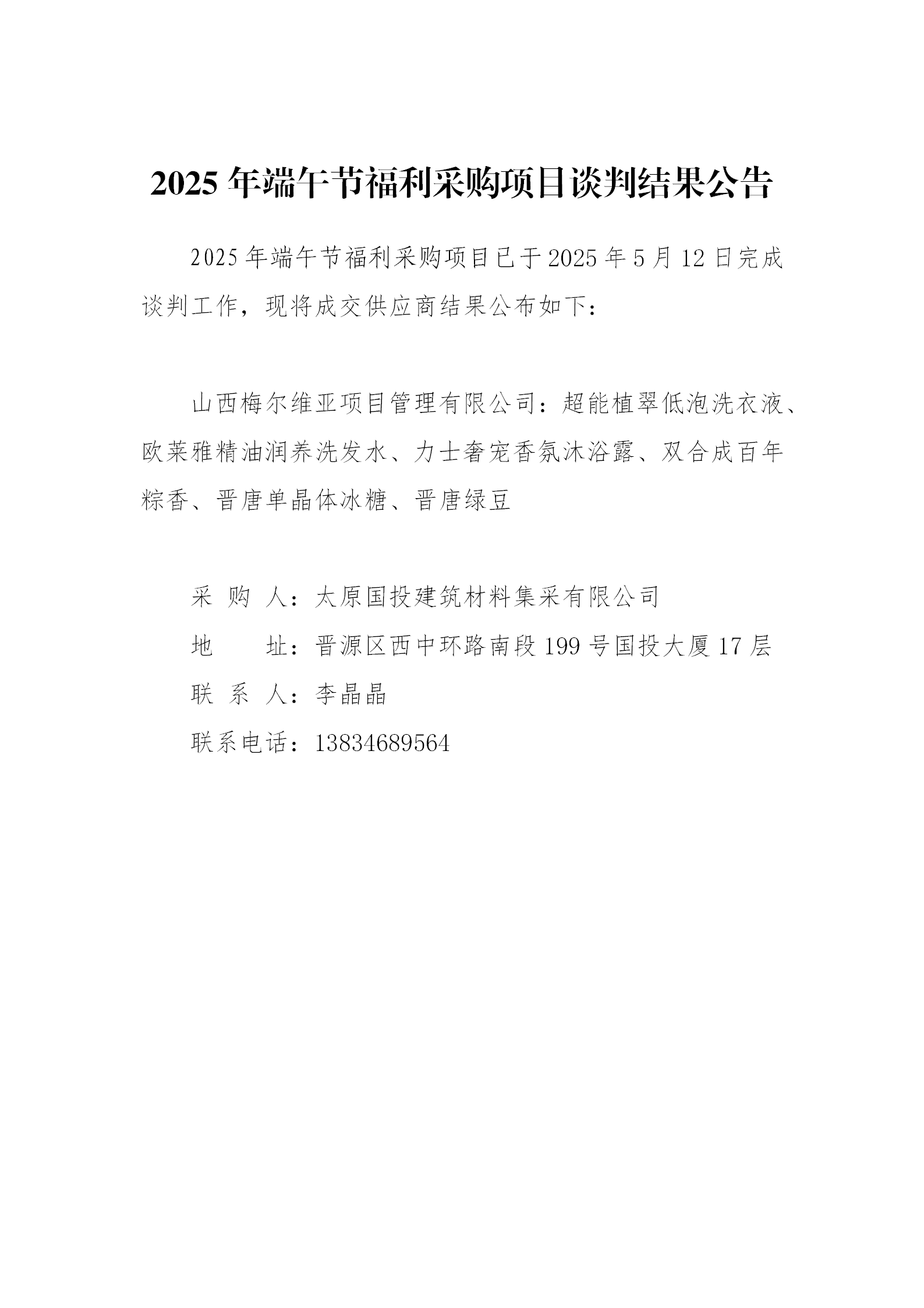 2025年端午節(jié)福利采購項(xiàng)目談判結(jié)果公告