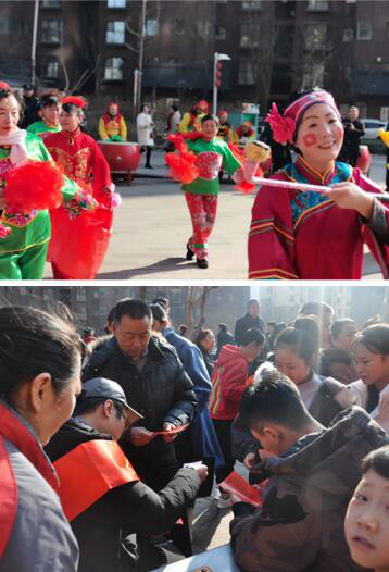 活動(dòng)現(xiàn)場(chǎng)人流如織,鑼鼓喧天。由社區(qū)居民自發(fā)組成的3支社火巡游展演隊(duì)爭奇斗艷,秧歌,劃旱船等具有地方特色的節(jié)目依次呈現(xiàn)。走進(jìn)燈謎區(qū),上百張謎面被紅線穿著懸在燈籠下面。在場(chǎng)的觀眾興致勃勃,踴躍參加,各顯其才在謎語前駐足思考,共同參與這場(chǎng)節(jié)日里的頭腦風(fēng)暴。不一會(huì)兒大半燈謎都被“攻克”。物業(yè)志愿者為大家緊張有序兌換禮品。一張張紅艷艷的謎面變成了居民手中豐富多樣的智慧結(jié)晶。