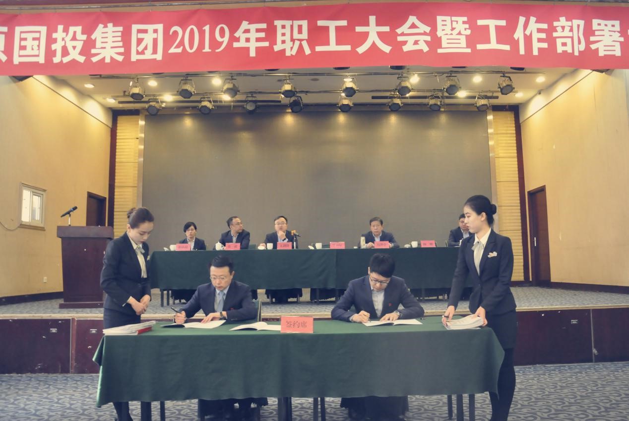 2019年3月14日上午,太原國投集團2019年職工大會暨工作部署大會隆重舉行,公司領導班子成員及全體員工參加了本次會議。公司副董事長、副總經理文劍鋒主持了會議。