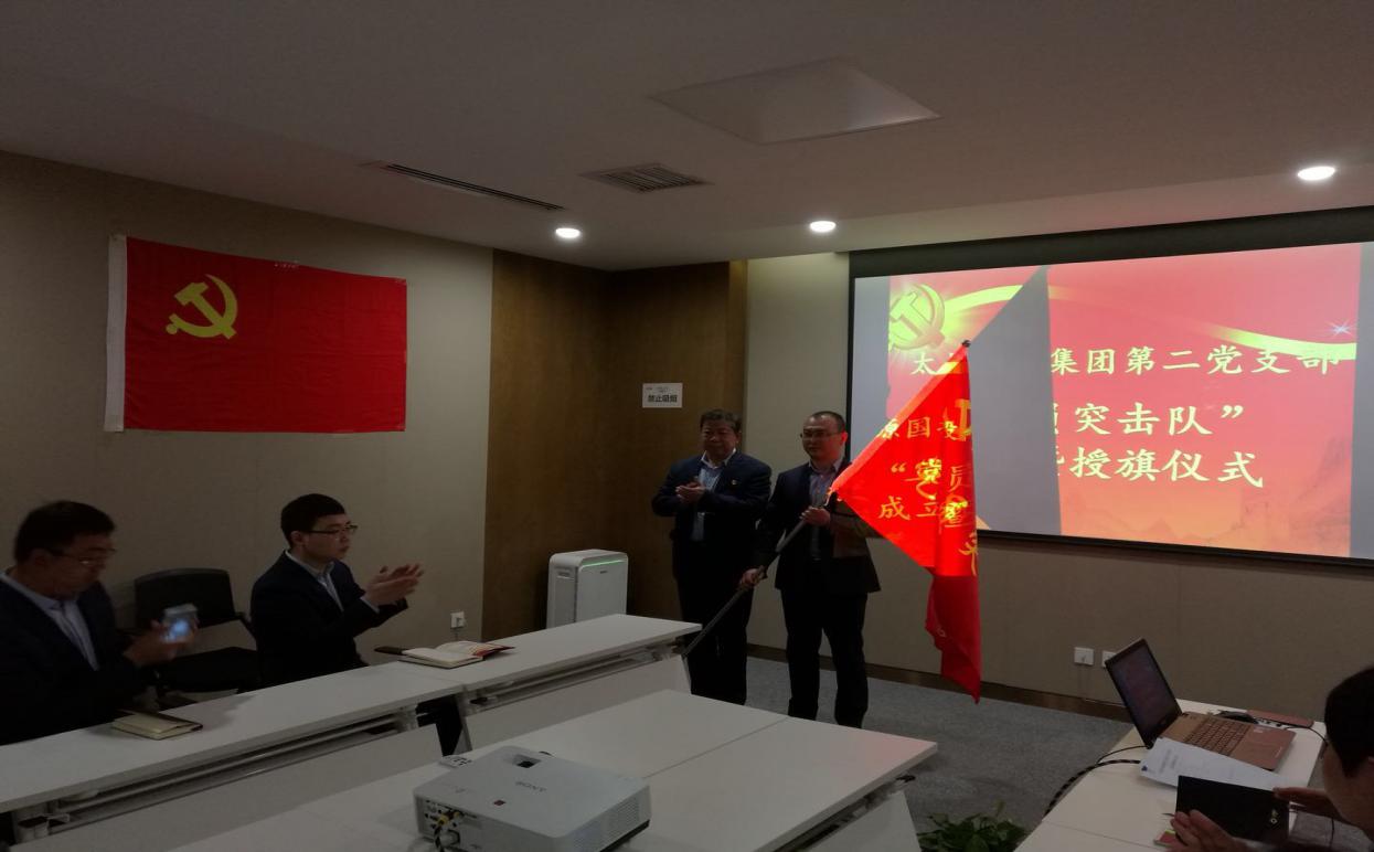 成立儀式在全體人員合唱國歌的環(huán)節(jié)中拉開帷幕,接著由黨委委員文劍鋒宣讀《關(guān)于成立太原國投集團(tuán)第二黨支部黨員突擊隊的通知》,由第二黨支部部分黨員和公司業(yè)務(wù)骨干組成,成員有隊長張耀偉、指導(dǎo)員王棟、隊員王琳、韓翠翠、武士杰、郭亞慧、閻劍、郭琦、趙艷、趙麗明、張琦、邊疆共計12名。在嚴(yán)肅莊重的氛圍下,集團(tuán)黨委書記馮澤亭同志向突擊隊隊長張耀偉同志授旗。